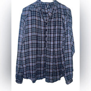 Free People Northern Bound Oversized Plaid Half Button Long Sleeve Shirt XS