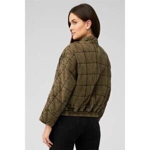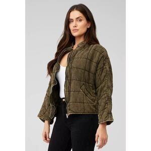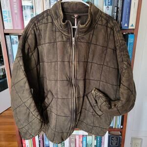 Free People Oversized Quilted Military Green Knit Zip Up Jacket Size M