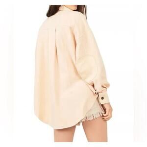 Free People Oversized Ruby Sweetheart Fleece Shirt Jacket Distressed Size Small