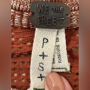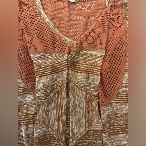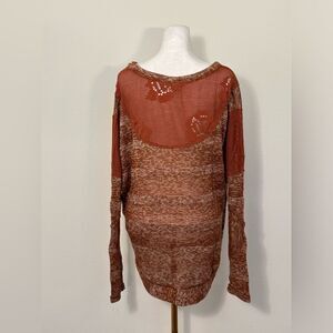 Free People Oversized Rust Orange Sweater with Lace Accents Women’s Size Small