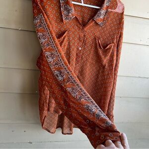 Free People Oversized Sheer Boho Button Down Shirt - Size Small