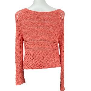 Free People SZ M Crochet Sweater Pink Women's Breezy Boho Coastal Relax Comfort