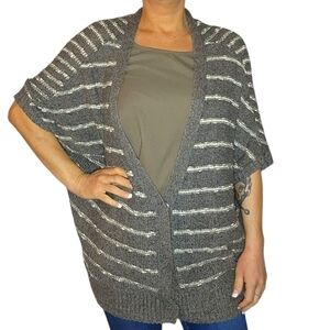Free People Oversized Snap Button-Up Dolman Cardigan Grey Stripes Size Small