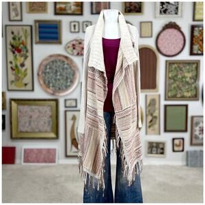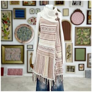 Free People Oversized Southwestern Poncho Womens Size Medium Cream Brick Rust
