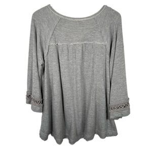Free People Oversized Split Boatneck Bell Sleeve Crotchet Hi-Lo Raw Hem Thermal