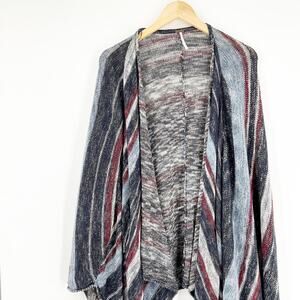 Free People Oversized Striped Poncho Style Boho Open Front Cardigan Size XS
