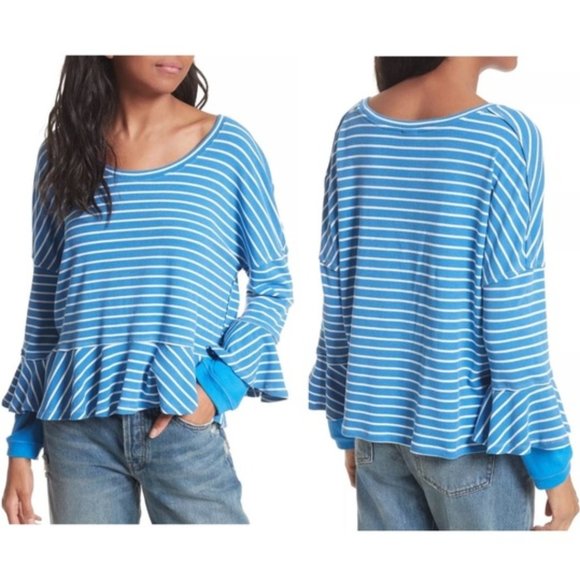 Free People Oversized Striped Twofer Top Small Coastal Relaxed Ruffle Peplum