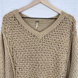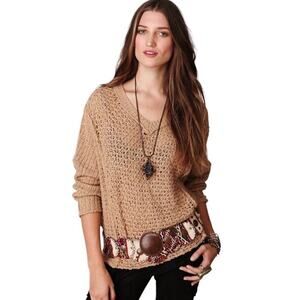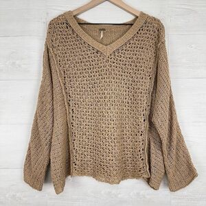 Free People Oversized Sweater Women S Brown Boho V Neck Baja Laguna Open Knit