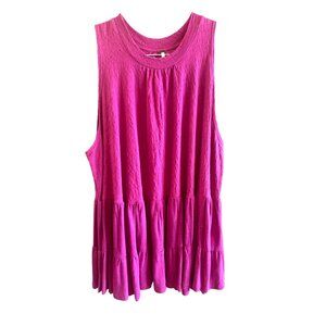 Free People Womens Top Tiered Ruffle Hem Tunic Tank Raspberry Pink Back Ties XS Oversized