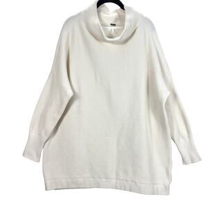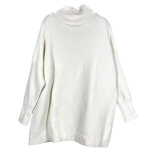 Free People Oversized Tunic Sweater Funnel Neck Cotton Blend Cream Ribbed L