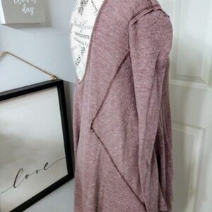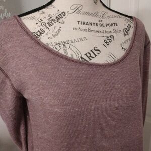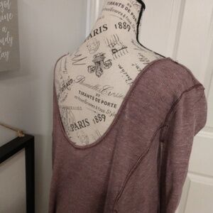 Scoop neck. Lower neck on the back. Slits on the side. It is a reposh. It is just a bit too big.