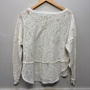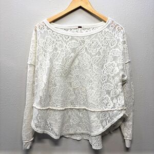 Free People Oversized XS Soft Off White/Cream Floral Pullover Lace Sweater