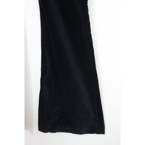 High waisted velvet flares with a four-pocket design, featuring slant hip pockets. Flat front with hidden double hook closures and zip fly.