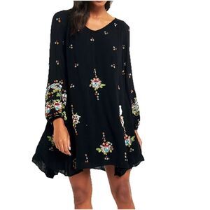 Free People Oxford Dress Sz M Embroidered Cottagecore Boho WhimsyGoth Lagenlook