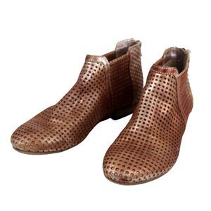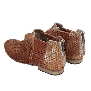 Free People PERFORATED BRONZE BROWN LEATHER ROUND ZIP BACKSIDE ANKLE BOOTS 9 39