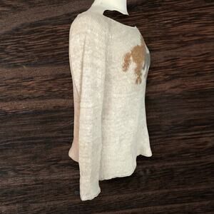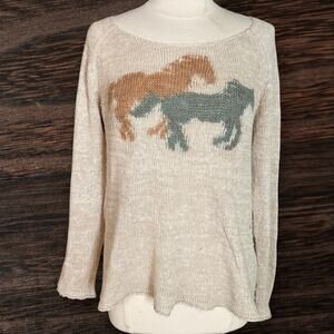 Free People PONY RIDE Blue Cloud Horse Pullover Sweater Sz L Womens Linen Wool +
