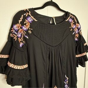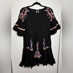 Free People - Pablo Dress - mini 3/4 sleeves, ruffles, embroidery. Black small