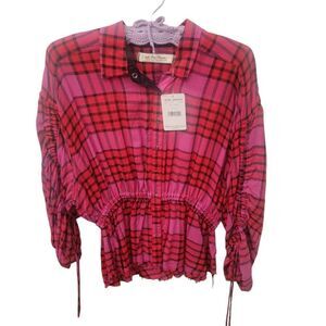 Free People Pacific Dawn Plaid Top. Size S. NWT.