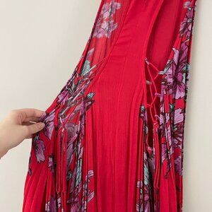 Free People Paint The Sun Red Floral Mini Slip Dress Size Small