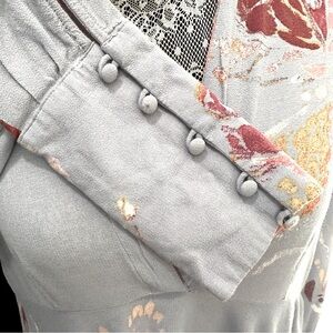 Free People Painted Meadow Tunic Dress Boho Floral Button Cuff - Size Small