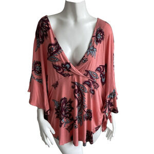 Free People Paisley Hippie Boho Top Tunic Flutter Sleeve Side Tie Size Medium