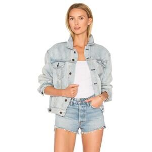 Free People Paisley Quilted Denim Jacket Trucker Boho Hippie Oversized Baggy M/L