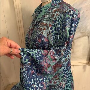 Vibrant paisley and leopard print. Lightweight and stylish. Perfect for any occasion. Very cool comfortable dress up or with jeans , smoke and pet free never worn