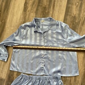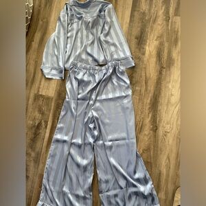 Free People Pajama Party Womens XL Blue Set Top Bottom Crop NWOT