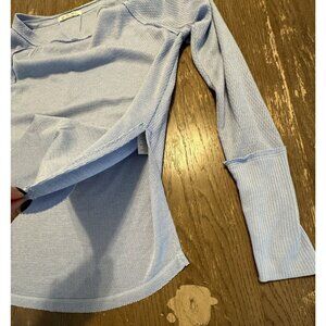 Free People Pale Blue Thermal Waffle Top Long Sleeve Tee MEDIUM Thumb holes