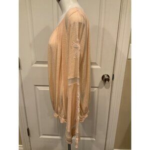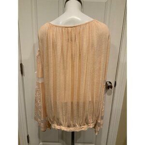 Free People Pale Peach Long Sleeve Top Embroidered Mesh Bell Sleeves, Size M