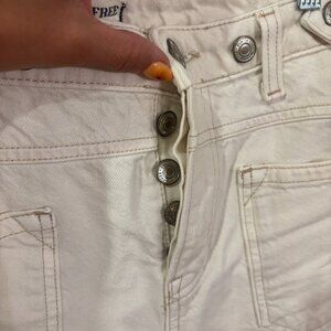 Free People Palmer Cuffed Wide Leg Jeans Cream