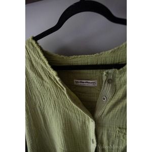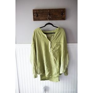 So cool relaxed fit pullover featured in a flowy design with a button-up henley style with patched panel detailing.
