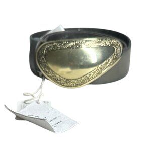 Free People Paloma Leather Buckle Belt Womens Size M/L Engraved Buckle Boho