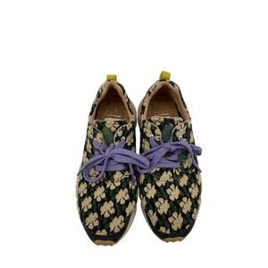 Free People 'Pampas' Green Textile Sneakers Size 6.5: low-profile design, japanese canvas uppers, floral print, leather lining, natural cork insole, agion mineral treatment, lightweight non-slip outsole, lace-up closure.