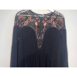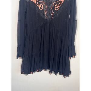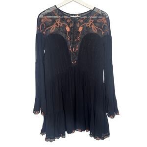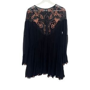 Free People Panama City Bell Sleeve Swing Mini Dress Black Women's Size Medium
