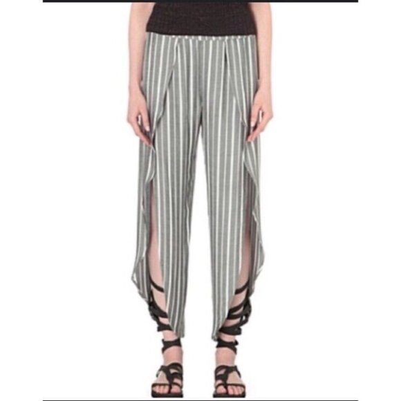 Free People Pants Size 2 Women’s Grey White Striped Split Hem Rosemary
