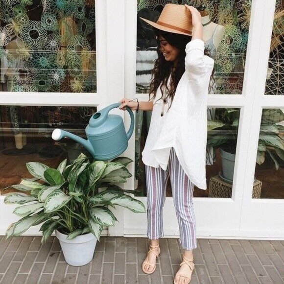 Free People Pants Stripe Mod Linen Blend Skinny Ankle Crop