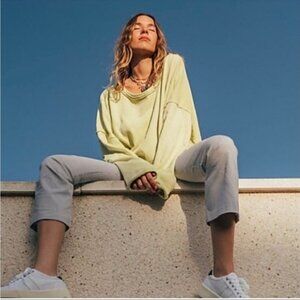 Free People Pants Sz L Florence Crop Flare Blue White Striped NWT