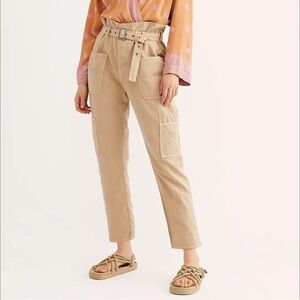 Free People Pants Womens 8 Percy Paper Bag Cargo Khaki Capri High Rise 100% Cotton. Pre-owned condition. Missing belt. Several small stains. See last 3 pictures for details. See photos for measurements. Ships quickly from smoke-free home.