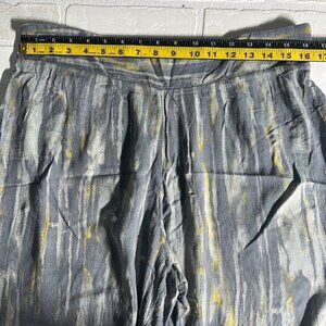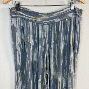 Free People Pants Womens Large Gray Blue Yellow Abstract Wide Leg Boho Lounge