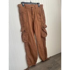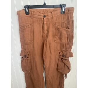 Free People Pants Women's Size 4 Orange/Brown Cargo Gauze 100% Cotton, y2k