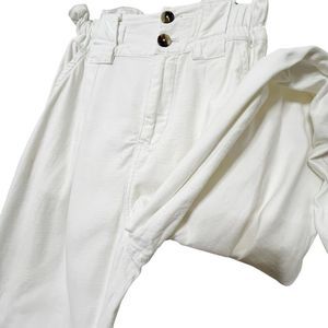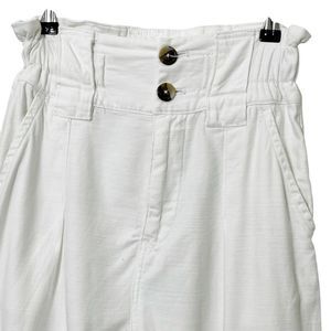 Free People paper bag waist pants in crisp white cotton with a relaxed wide-leg fit for casual yet chic styling.
