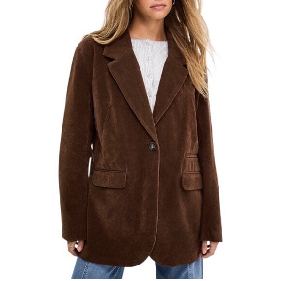 Free People Paper Cut Vegan Suede Blazer Jacket Women’s Small Brown Casual NEW