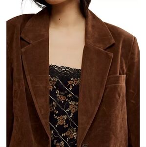 Free People Paper Cut Vegan Suede Blazer NWT Brown Size S (Oversized)