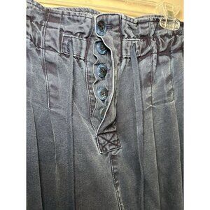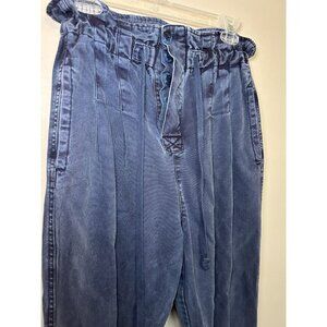 Free People Paperbag Waist Pants High Waist Button Front Baggy Mom Boho Blue xs
