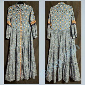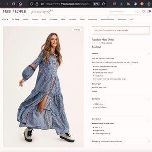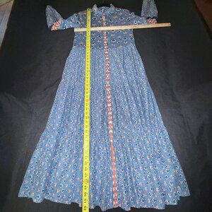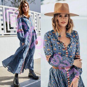 Beautiful Free People Papillion Dress in size Extra Small. Boho-inspired printed maxi dress featured in a flowy silhouette. Button closures down the front, wide long sleeves, lightweight sheer cotton, tiered skirt. The removable mini slip is missing, but the dress is not see through or transparent in any way. Excellent like new condition. Please see pictures for details, fabric content, condition & measurements, since they are part of the description. Sold out in stores. My prices reflect the rarity of my items and what I paid for them. Reasonable offer welcome.
