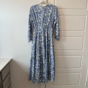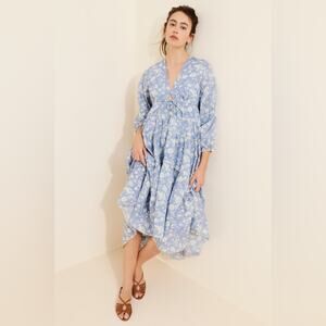 Charming blue midi dress with floral pattern. Perfect for any occasion.