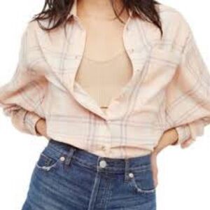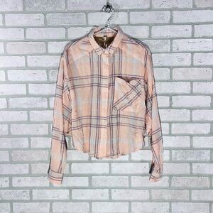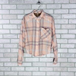 Free People Paradise Garden Cropped Plaid Button-Down Shirt Size S