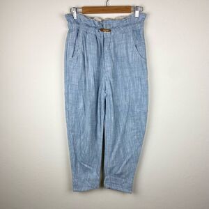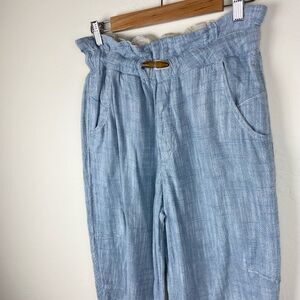 Free People Paradise Linen-Blend Chambray Ankle Pant - Light Blue
