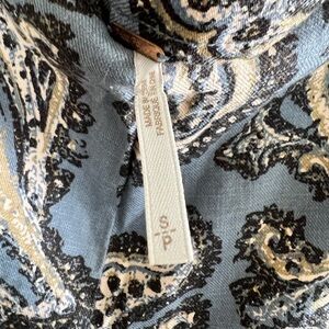 Free People Paradise Printed Flared Linen Blend Pant Blue Combo